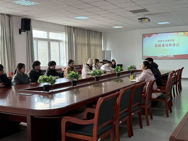 為進一步發揮思政委員理論武裝和思政教育的主體作用,增強思政工作針對性和實效性,加強思政委員隊伍建設,12月13日,旅游與會展學院在學院會議室召開了學院思政委員座談會,學院黨委副書記孫靜宇出席會議,全體思政委員參加座談會。會議由學工辦副主任董敏主持。