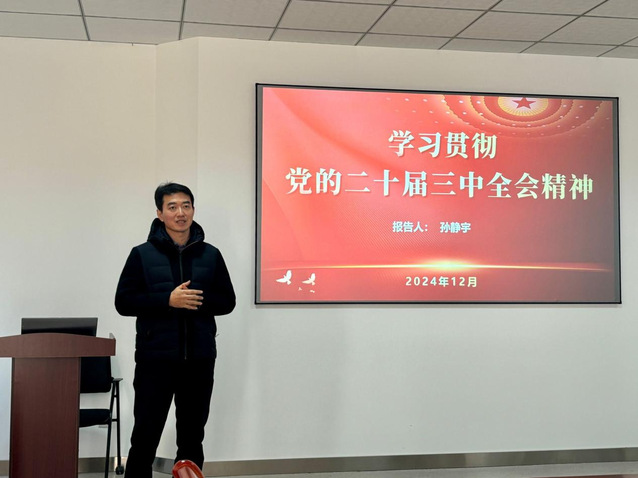 黨課上,孫靜宇首先回顧了黨的二十屆三中全會(huì)的召開背景、主要議程和重要意義。他強(qiáng)調(diào),這次全會(huì)在新征程上高高舉起改革開放偉大旗幟,堅(jiān)定不移走中國式現(xiàn)代化道路,具有繼往開來的里程碑意義。會(huì)議審議通過了《中共中央關(guān)于進(jìn)一步全面深化改革、推進(jìn)中國式現(xiàn)代化的決定》,為國家未來發(fā)展導(dǎo)航,是全面深化改革、推進(jìn)中國式現(xiàn)代化的關(guān)鍵指引,提供強(qiáng)勁動(dòng)力與制度根基。