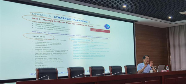 本次講座由旅游與會展學院酒店與會展系副主任姚靜靜博士主持,省市會展協會的多個會員單位以及旅游與會展學院的100余名師生參加了此次講座。