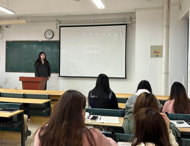首先,支部黨員朱雪玲通過聲情并茂的演講和詳盡的視頻資料展示,帶大家一起“穿越”回1937年,共同聆聽千千萬萬愛國將士浴血奮戰(zhàn)、視死如歸,各界民眾萬眾一心、同仇敵愾共同奏響的一曲氣壯山河的抗擊日本侵略的英雄凱歌。接著,通過對歷史記載的剖析,同學們認識到七七事變是日本帝國主義全面侵華的開始,也是中華民族進行全面抗戰(zhàn)的起點,此后,中國軍民奮起抵抗,無數(shù)中華兒女前赴后繼,用生命捍衛(wèi)了一個民族的不屈尊嚴。最后,同學們對此次學習的所思所想進行交流總結(jié),紛紛表示對革命先輩“拋頭顱、灑熱血”的革命精神的敬仰,也更加堅定自己對祖國母親深沉而誠摯的愛。