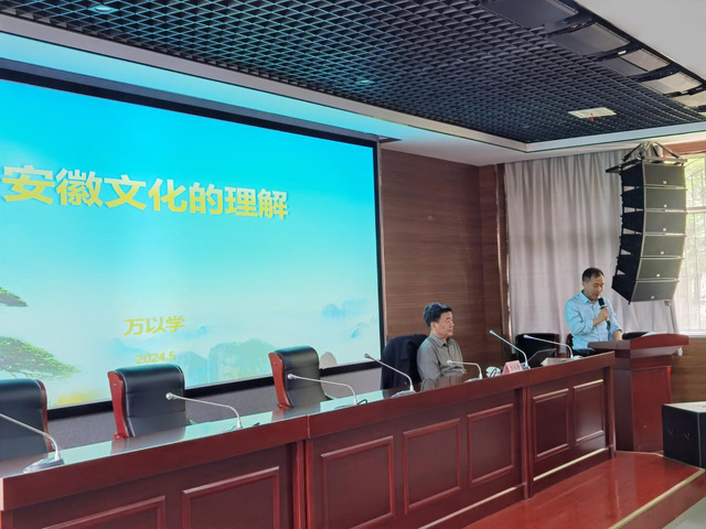 2024年5月9日下午,旅游與會展學院、科研處于南區(qū)一期6號樓學術報告廳舉辦了“善思講壇專題學術講座”。活動特邀安徽省政協(xié)十二屆常委、民族與宗教委員會主任萬以學作題為“安徽文化的理解”的學術報告。旅游與會展學院院長宋玉軍支持,100余名老師和學生參加了本次講座,到場聆聽學習。