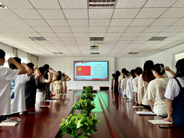 活動伊始,在領誓人董敏的帶領下,全體黨員高舉右拳,面向黨旗莊嚴宣誓:“我志愿加入中國共產黨,擁護黨的綱領,遵守黨的章程,履行黨員義務……”鏗鏘有力的誓言回蕩在會議室,每一位黨員都深受觸動,心中充滿了對黨的無限忠誠和堅定信念。宣誓結束后,支部為黨員送上政治生日賀卡,并鼓勵大家牢記初心使命,爭當先鋒表率。