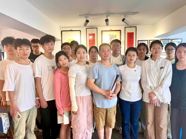活動伊始,團隊來到了章立新扇藝工作室。順著石板路向前走,工作室就這樣靜靜佇立在郁郁蔥蔥綠葉之下,推門而入,章先生安靜地忙著手頭上的工作,在他的手下,每一把扇子都是文化的傳承,都是歷史的低吟,蘊含著對扇文化的追求與傳承。第二站來到藏在巷子里的文化與藝術圣地——楊記扇莊,小巷中不起眼的小小門頭里別有洞天,楊一東先生展出他的珍藏,兼顧美觀與實用、雅與韻的扇子緩緩出現在同學們眼前,扇莊還在互聯網上直播,身體力行地弘揚扇文化。經此,同學們真正感悟到“懷袖雅物”的深刻內涵,也探尋到了扇文化獨特魅力。