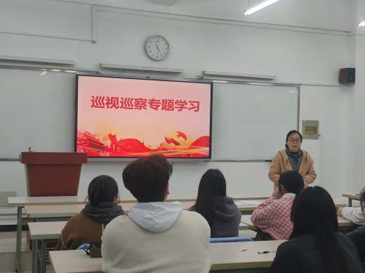 1128日下午4時,生物工程系學生黨支部在生化樓214教室開展了巡視巡察專題學習的主題黨日活動。
