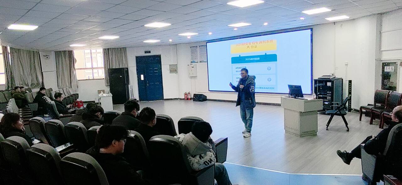 在皖西學(xué)院,環(huán)境與旅游學(xué)院張廣勝院長接待并精心組織安排好宣講場所與參會(huì)學(xué)生;張?jiān)洪L主持了此次宣講活動(dòng),此次宣講對象是環(huán)境科學(xué)與工程、生物工程、地理科學(xué)等專業(yè)大三大四學(xué)生,部分感興趣的大一大二學(xué)生也踴躍參加。在宣講過程中,葉勁松老師就合肥大學(xué)、生物食品與環(huán)境學(xué)院基本情況以及資源與環(huán)境專業(yè)學(xué)位研究生的招生計(jì)劃、發(fā)展歷程、培養(yǎng)特色、師資力量、培養(yǎng)基地及獎(jiǎng)助體系、未來就業(yè)等方面向同學(xué)們做了詳細(xì)介紹。之后張金流老師就2025年研究生招生調(diào)劑流程、方法及注意事項(xiàng)以及我院研究生招生培養(yǎng)政策、我院4個(gè)碩士點(diǎn)招生報(bào)考情況向同學(xué)們做了介紹并詳細(xì)解答了同學(xué)們的疑問。