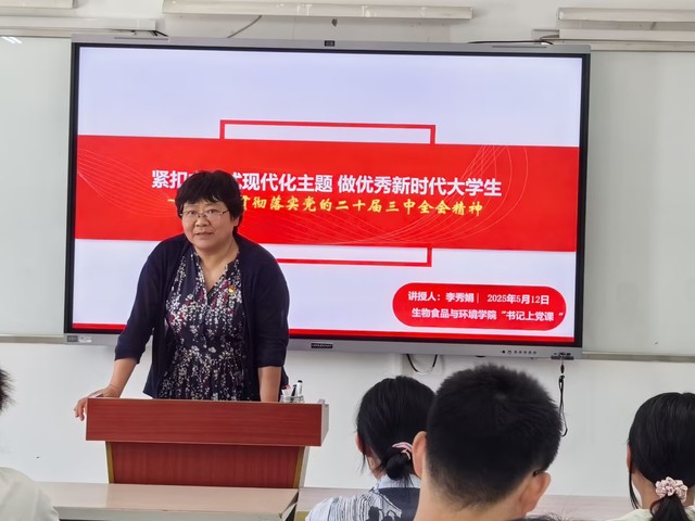 202551212點(diǎn)50分,生物食品與環(huán)境學(xué)院分黨校第24期入黨積極分子培訓(xùn)班第一課在生-214教室開(kāi)展,由黨委書(shū)記李秀娟主講。