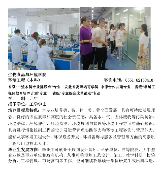 培養(yǎng)目標(biāo)及特色:本專(zhuān)業(yè)培養(yǎng)德、智、體、美、勞全面發(fā)展,具有可持續(xù)發(fā)展理念、良好的職業(yè)素養(yǎng)和高度的社會(huì)責(zé)任感,具備水、氣、固體廢物等污染防治、環(huán)境法律、環(huán)境評(píng)價(jià)、環(huán)境監(jiān)測(cè)、環(huán)境規(guī)劃與管理等環(huán)境工程方面的基礎(chǔ)知識(shí)。具有進(jìn)行污染控制工程的設(shè)計(jì)及運(yùn)營(yíng)管理實(shí)踐能力和環(huán)境工程咨詢(xún)與管理能力,能夠從事環(huán)境工程設(shè)計(jì)、環(huán)保設(shè)備開(kāi)發(fā)、環(huán)境咨詢(xún)與服務(wù)及管理等方面的高素質(zhì)工程應(yīng)用型技術(shù)人才。