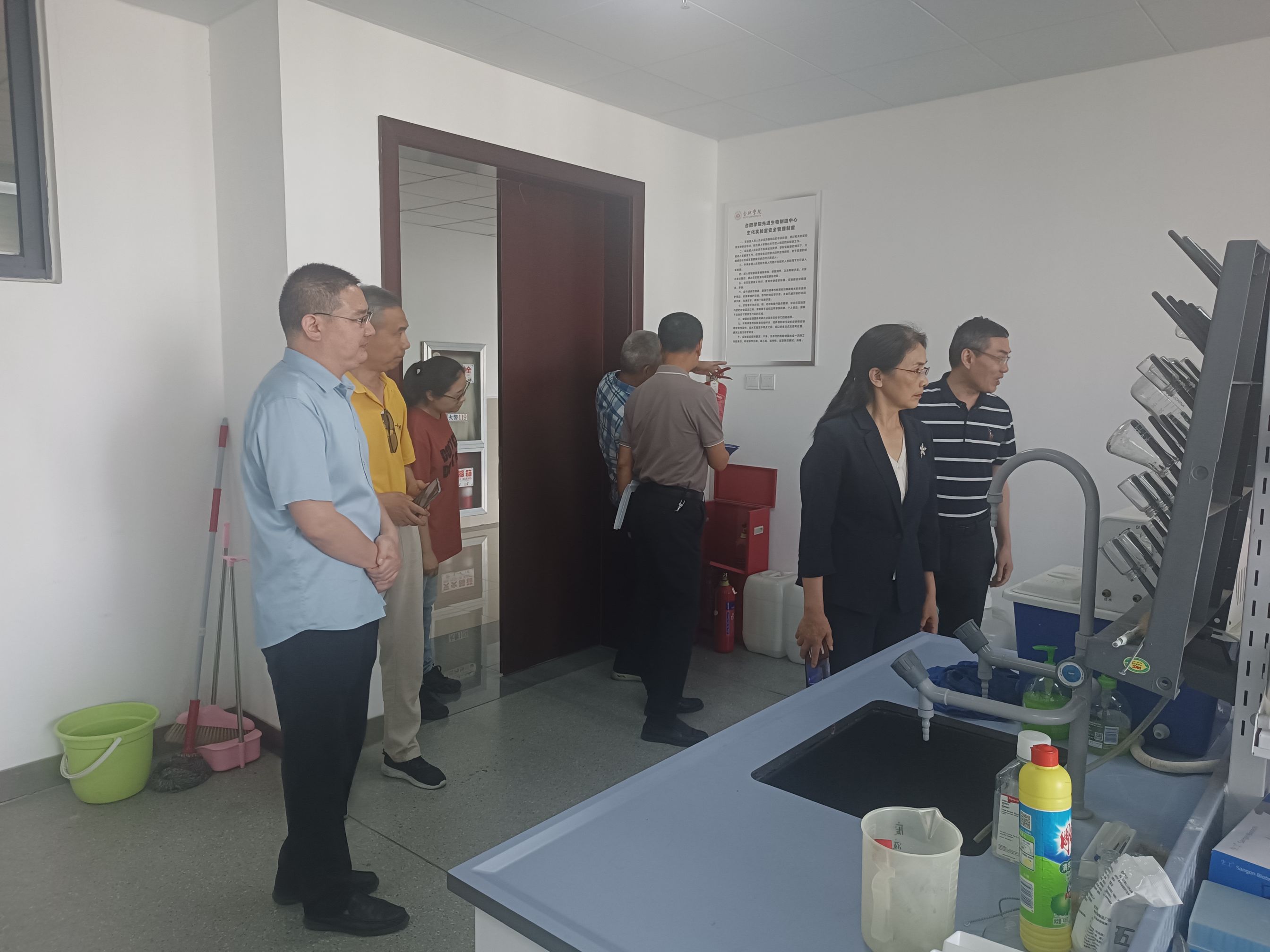 實(shí)驗(yàn)室內(nèi)涉及高溫、高壓、高速、危化品等危險(xiǎn)因素,各類(lèi)安全風(fēng)險(xiǎn)交織疊加。合肥大學(xué)生物食品與環(huán)境學(xué)院以排查和整改實(shí)驗(yàn)室安全隱患為抓手,以防范遏制實(shí)驗(yàn)室各類(lèi)安全事故為目標(biāo),開(kāi)展實(shí)驗(yàn)室安全專(zhuān)項(xiàng)檢查工作,掌握防范實(shí)驗(yàn)室安全風(fēng)險(xiǎn)的主動(dòng)權(quán),營(yíng)造安全和諧的教學(xué)、科研環(huán)境。