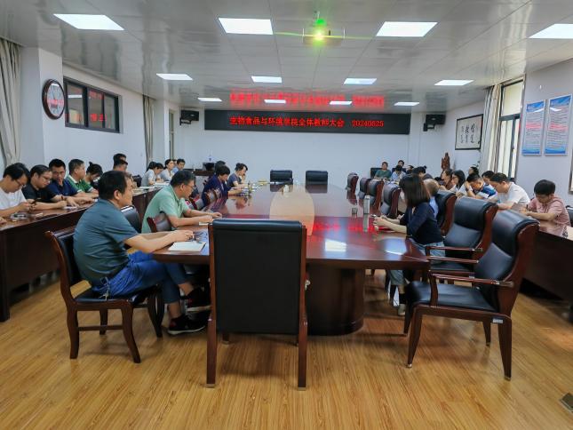 為進一步加強學(xué)院教師隊伍建設(shè),增強學(xué)院的內(nèi)在凝聚力,2024年6月25日,生物食品與環(huán)境學(xué)院組織開展了全體教師大會,學(xué)院黨政領(lǐng)導(dǎo)班子及全體教師參會。會議由院黨委書記李秀娟主持。