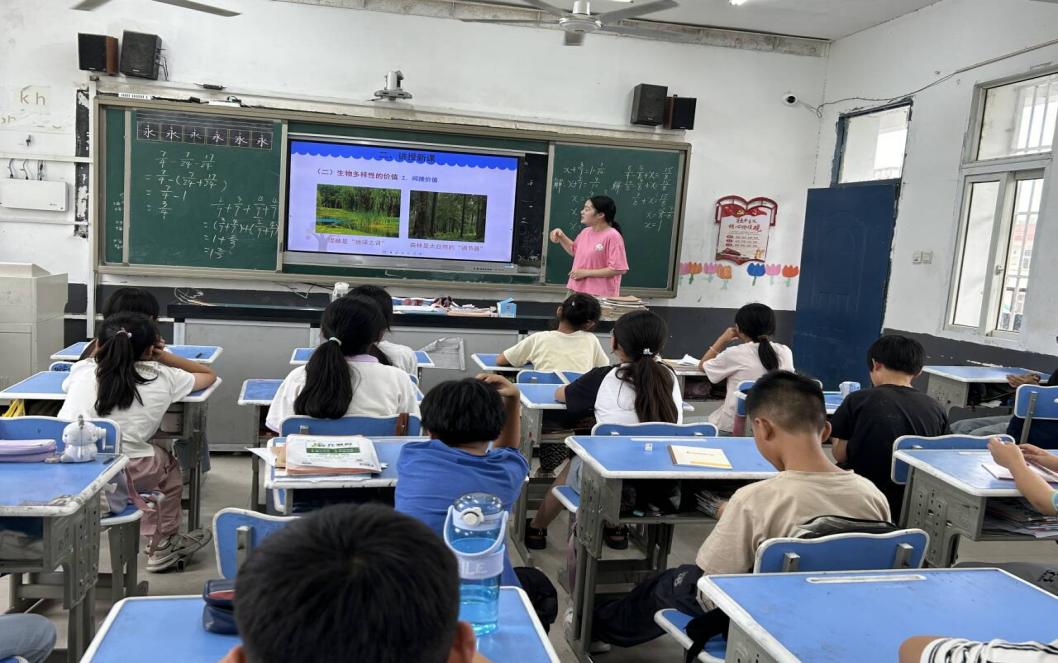 7月11日上午,合肥大學“綠野振興,與潁同行”調研團學校組的成員們來到候郢小學,為同學們帶來了一場別開生面的生物多樣性知識課堂。課堂上,成員們通過生動的PPT和有趣的實例,向同學們介紹了生物多樣性的基本概念、重要性和意義。在過程中,成員們還結合當地的生態環境,向同學們介紹了候郢小學周邊地區生物多樣性的情況。同時,成員們還向同學們介紹了保護生物多樣性的方法如減少污染,合理利用資源等。