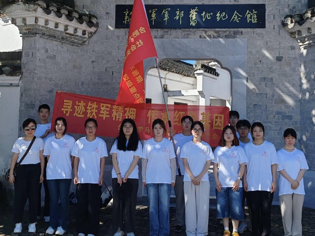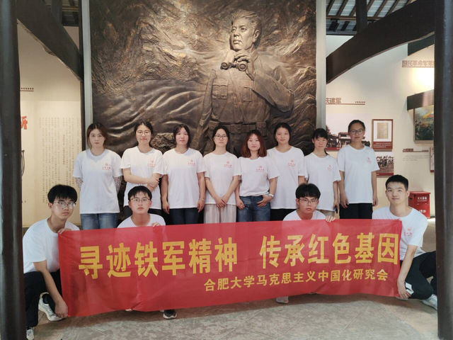 圖為合肥大學(xué)馬克思主義學(xué)院“星火銘魂,赤韻流芳”小隊(duì)到達(dá)新四軍軍部舊址合影