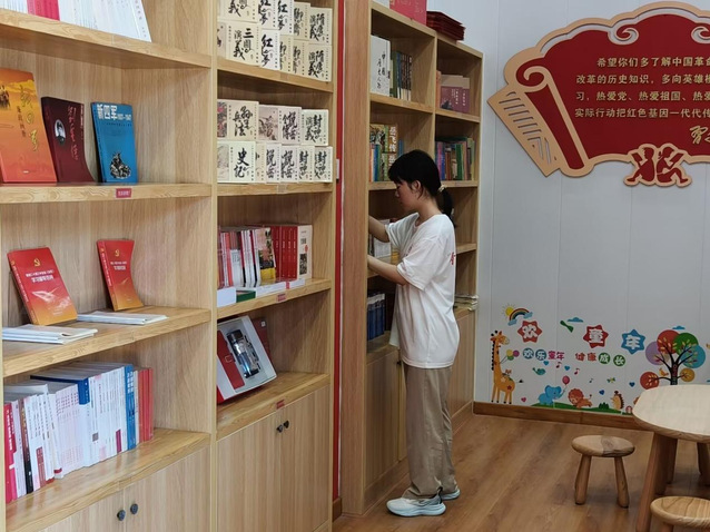 圖為合肥大學馬克思主義學院“星火銘魂,赤韻流芳”小隊成員尋覽紅色書籍