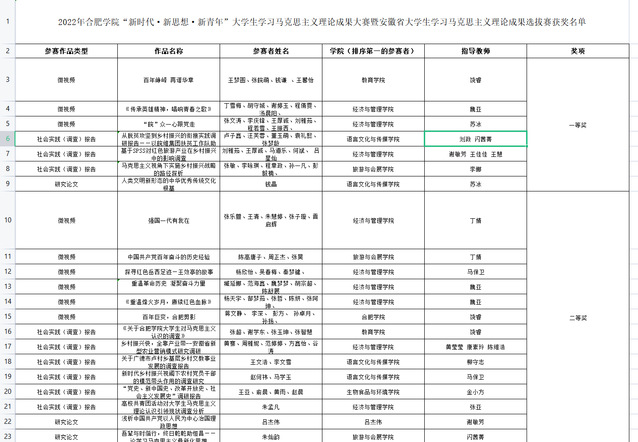 2022年合肥學院“新時代·新思想·新青年”大學生學習馬克思主義理論成果大賽暨安徽省大學生學習馬克思主義理論成果選拔賽獲獎名單