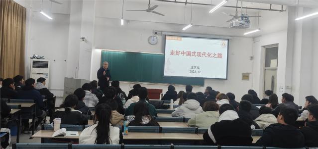 王其東為學生上“形勢與政策”課 中國式現(xiàn)代化的過去、現(xiàn)在和未來是什么樣的?大學生在新征程上應該書寫怎樣的答案,做出怎樣的貢獻?2023年12月5日下午,院黨委書記王其東教授以“走好中國式現(xiàn)代化之路”為題,為23級新能源、23級能源化學工程專業(yè)的學生帶來了一堂生動的《形勢與政策》課。 王其東書記圍繞中國式現(xiàn)代化的歷史演變、發(fā)展現(xiàn)狀展開授課。他首先回顧了近代百年在黨領(lǐng)導下中國人民探索中國式現(xiàn)代化的漫漫長路,講述了新中國成立后特別是改革開放以來的理論探索和實踐活動,重點講述了黨的十八大以來成功推進和拓展中國式現(xiàn)代化取得的變革與成就。接著,他深入闡述了中國式現(xiàn)代化的基本特征,是人口規(guī)模巨大的現(xiàn)代化,是全體人民共同富裕的現(xiàn)代化,物質(zhì)文明和精神文明相協(xié)調(diào)的現(xiàn)代化,人與自然和諧共生的現(xiàn)代化,走和平發(fā)展道路的現(xiàn)代化。然后,全面分析了中國式現(xiàn)代化與西方現(xiàn)代化的本質(zhì)區(qū)別,讓學生充分認識到,世界上既不存在定于一尊的現(xiàn)代化模式,也不存在放之四海而皆準的現(xiàn)代化標準,一個國家,一個民族,只有找到適合自己條件的道路,才能實現(xiàn)自己的發(fā)展目標。最后,王書記對青年在實現(xiàn)中國式現(xiàn)代化的重要作用提出四點希望,希望學生們要立大志,用理想之光照亮青春奮斗之路;要明大德,以崇德修身啟潤青春向善追求;要成大才,讓增長本領(lǐng)成就青春搏擊力量,擔大任,以敢于擔當書寫青春壯麗篇章。 課后,同學們紛紛表示,堅信中國式現(xiàn)代化道路不僅走得對、走得通,而且也一定能夠走得穩(wěn)、走得好,堅定了以中國式現(xiàn)代化推進中華民族偉大復興的必勝信念。作為當代大學生,深深感受到國家的進步應有青年的足跡,青年應以更加自信的態(tài)度、更加主動的精神,投入到未來現(xiàn)代化事業(yè)中去。(馬克思主義學院) |