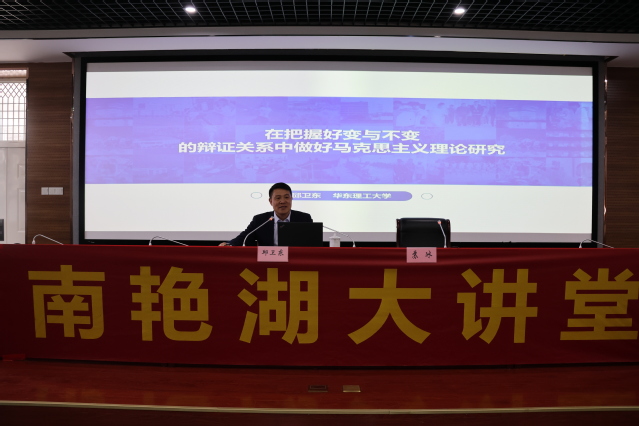 315日下午,由科研處、馬克思主義學院共同主辦的南艷湖大講堂學術報告在一期6號樓報告廳舉行特邀華東理工大學馬克思主義學院副院長邱衛東教授作題為在把握好變與不變的辯證關系中做好馬克思主義理論研究”的學術講座。講座由馬克思主義學院直屬黨支部書記、副院長蘇冰教授主持。全體思政課教師部分學生共100余參與此次報告會