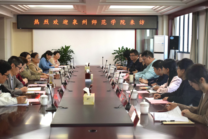 1031日,泉州師范學院黨委委員、副校長夏侯建兵來校調研交流,我校在行政樓會議室召開座談會,副校長陳秀出席并主持會議,相關職能部門負責人參加會議。
