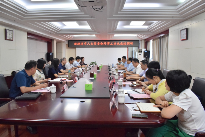 9月17日,由省人大常委會委員、外事工委主任黃曉求帶領的省市人大常委會外事工委一行來我校調研。我校在行政樓九樓東會議室召開調研座談會,校黨委書記王其東、副校長盧平出席會議,相關職能部門和二級學院負責人參加會議。