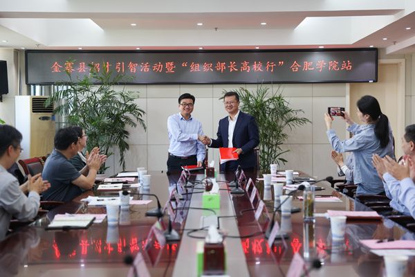 11月3日上午,金寨縣委副書記胡勁松,縣委常委、組織部部長倪秀鋒一行來我校開展招才引智暨“組織部長高校行”活動。省教育廳副廳長解平到會指導,校黨委書記王其東、黨委副書記劉建中出席會議,學生處、先進制造工程學院、人工智能與大數(shù)據(jù)學院相關負責人參加會議。