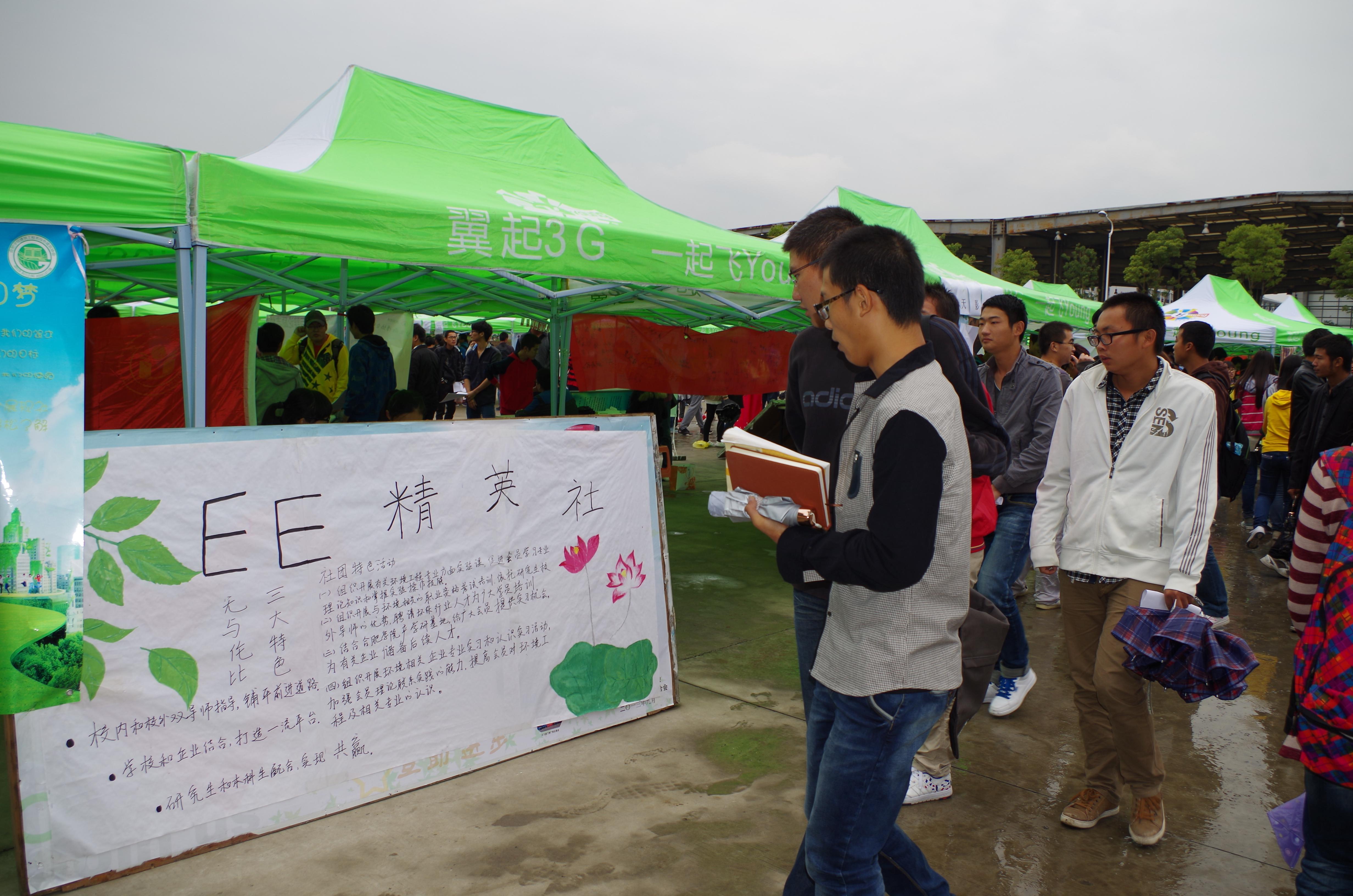 20131017日合肥學院研究生環境工程精英社(Environment Engineering精英社,簡稱EE精英社第一次招新圓滿結束。本次社團招新共招會員38名,社團成員以研究生為主體,其中2013級研究生23,本科生15人。