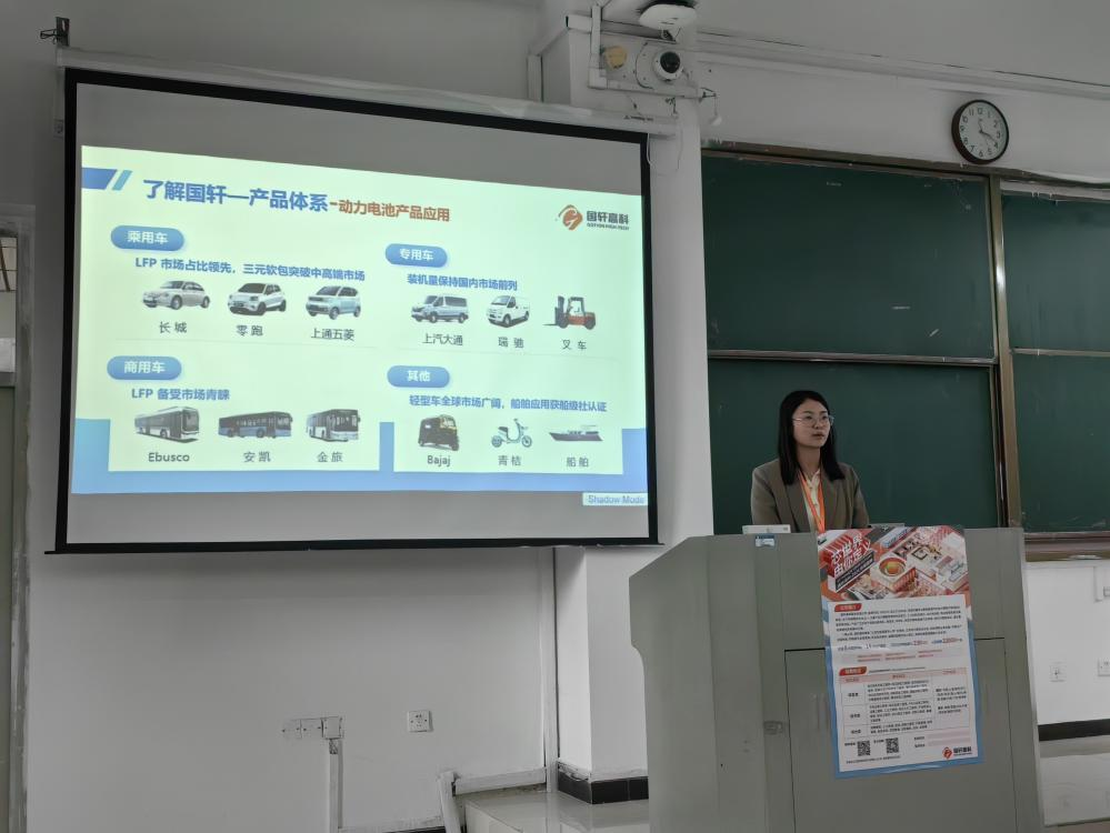 此次招聘宣講會由國軒高科股份有限公司招聘經理徐開元、項琴負責宣講。招聘會伊始,由項琴播放企業宣傳片,她從基本情況、產品體系、全球布局、研發實力、榮譽資質等方面對公司的發展歷程、發展成就、社會影響進行了詳細的闡述,幫助準備就業的研究生認識國軒、選擇國軒。