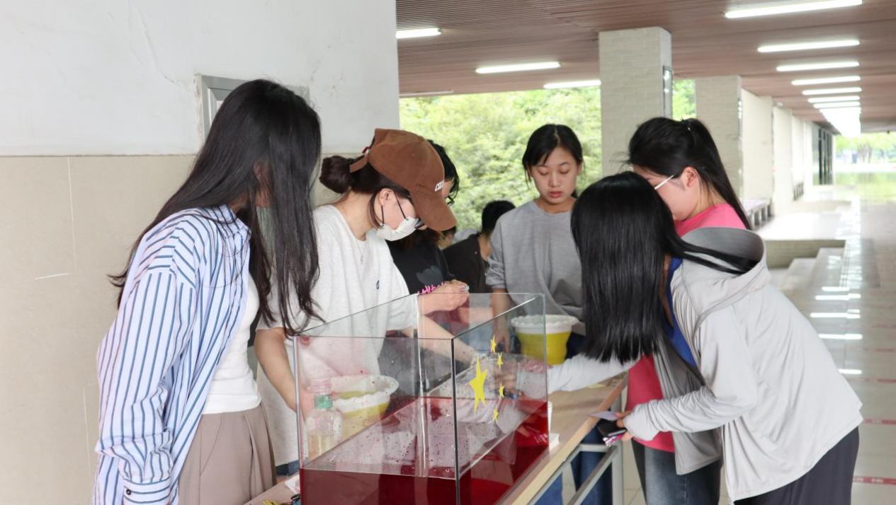 活動三圍繞“淬英雄之心,鑄英雄精神” 開展。以打卡的互動玩法可以在國旗背景墻上寫下對祖國,家鄉(xiāng)的愿望,將愿望釘在國旗背景墻上上,并將代表著赤誠之心的紅墨水倒入透明箱中,使國旗變完整,以不一樣的互動打卡形式展現(xiàn)不同的五四風(fēng)貌。