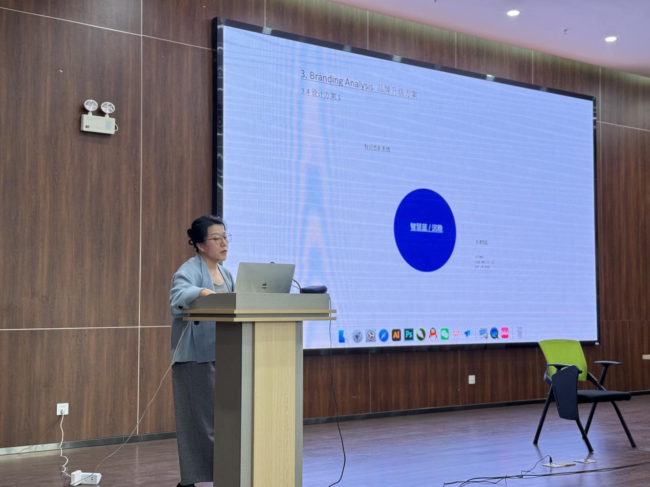 首先張雅梅老師通過安徽博望中安振興建投VI設(shè)計(jì)案例,介紹了從前期調(diào)研的充分準(zhǔn)備到設(shè)計(jì)思路,并強(qiáng)調(diào)了方案匯報(bào)的技巧。利用綜合交通院品牌VI系統(tǒng)升級(jí)案例,分析如何在品牌現(xiàn)有形象基礎(chǔ)上進(jìn)行全面規(guī)劃設(shè)計(jì),提升企業(yè)形象的現(xiàn)代性和品牌力。其次,從兩個(gè)空間案例向同學(xué)們介紹了展示材質(zhì)、燈光等具體解決方案。