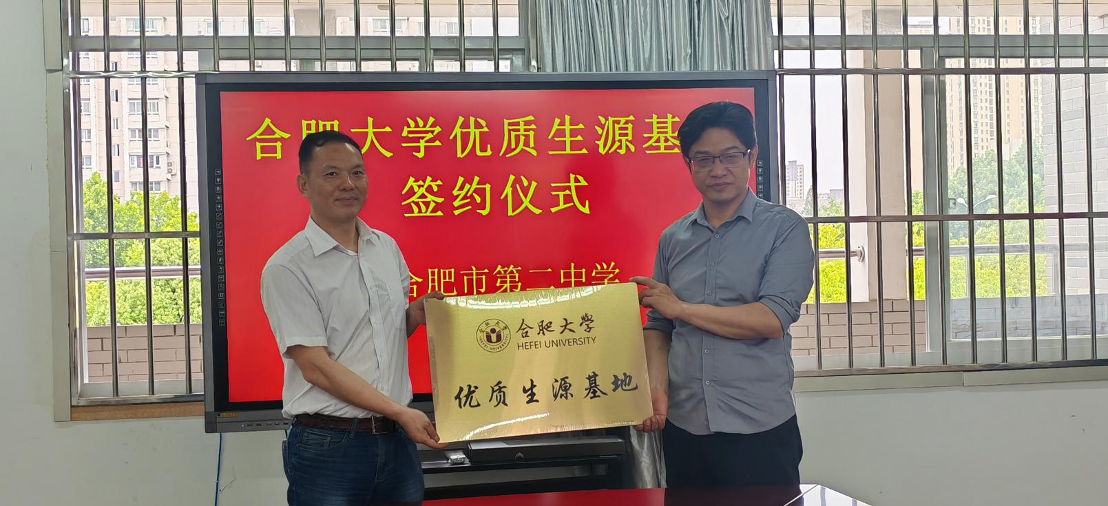 5月27日下午,“合肥大學(xué)優(yōu)質(zhì)生源基地”授牌儀式在合肥第二中學(xué)舉行。合肥大學(xué)設(shè)計(jì)學(xué)院院長(zhǎng)潘峰、副院長(zhǎng)彭松、數(shù)字媒體系主任武珩,合肥第二中學(xué)校黨委書記蘇衛(wèi)兵、副校長(zhǎng)胡毅林、副校長(zhǎng)田先科出席儀式。