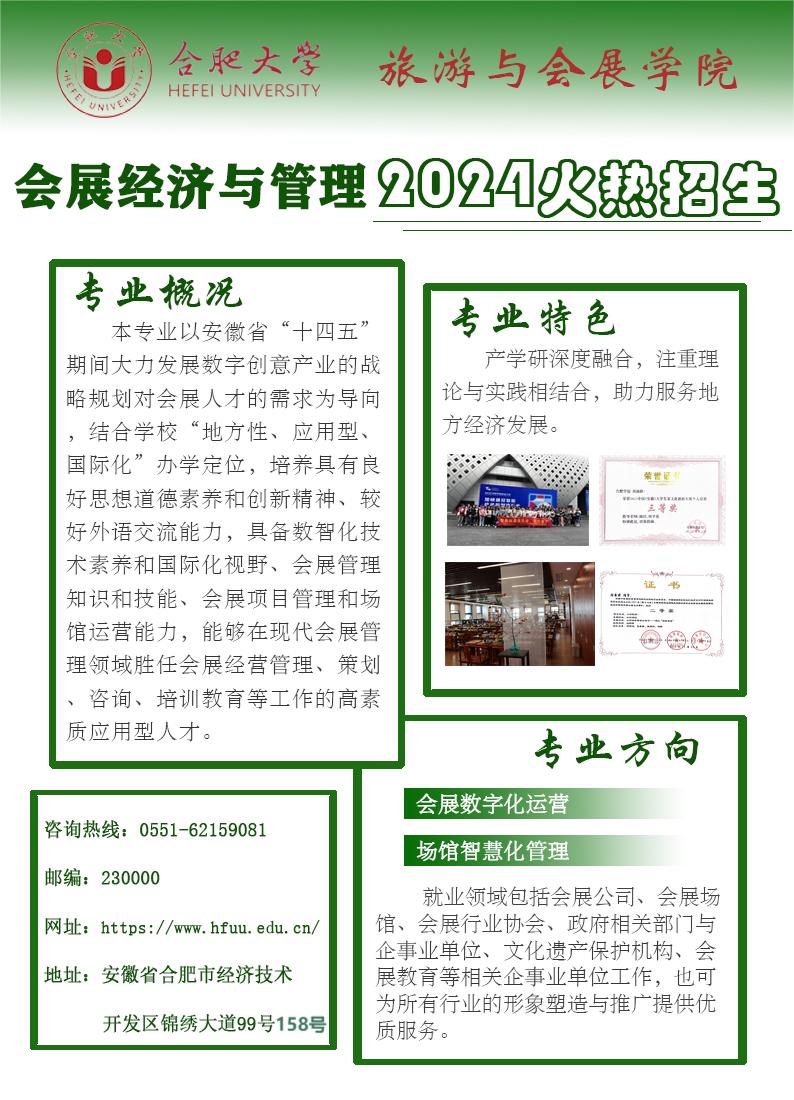 會展經濟與管理(本科)                   咨詢電話:0551-62159081