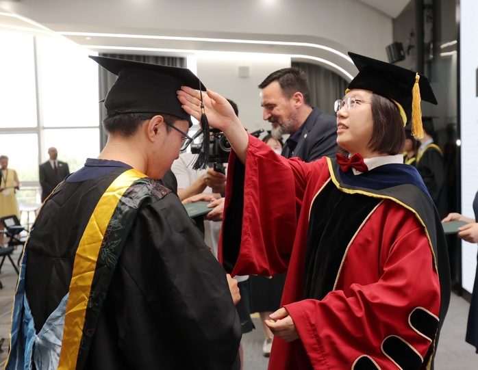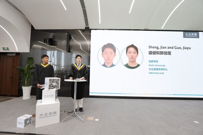 6月16日上午,我校和大眾集團合作培養的首批“種子工程師”順利畢業,校長吳春梅出席大眾安徽舉行的畢業典禮。大眾中國執行副總裁傅勤彥先生、大眾安徽首席執行官葛皖鏑博士、首席制造官施耐德先生、首席技術官呂爾曼博士、首席人力資源官邵劍先生以及校長辦公室、教務處、國際交流合作處、先進制造工程學院、人工智能與大數據學院相關領導和老師共同參加畢業典禮。