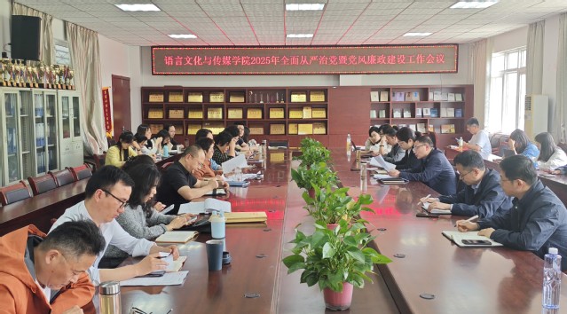 4月8日下午,語言文化與傳媒學院在學院大會議室召開2025年全面從嚴治黨暨黨風廉政建設工作會議,學院全體教師參加會議,會議由院黨委書記儲昭輝主持。