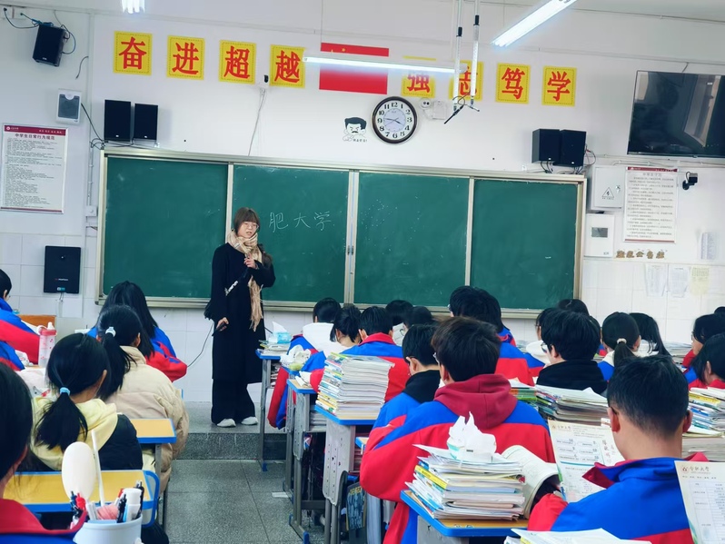 本次活動(dòng)涉及合肥一中、合肥六中、合肥168中學(xué)等省內(nèi)外28所中學(xué),影響了近千位高中學(xué)生。來自24級新聞1班的夏若彤返回母校阜陽紅星中學(xué),她以介紹合肥大學(xué)的特色與優(yōu)勢為核心,向同學(xué)們展示了大學(xué)生活的魅力,詳細(xì)講解了學(xué)校的專業(yè)設(shè)置和課程安排,特別是一些特色專業(yè)和同學(xué)們感興趣的熱門專業(yè)。同時(shí)還分享了豐富多彩的校園活動(dòng),包括社團(tuán)、體育賽事、學(xué)科競賽和志愿服務(wù)等內(nèi)容,展現(xiàn)了大學(xué)生活的多元化。在宣講過程中,夏若彤積極與高中生們積極互動(dòng),耐心回答他們提出的關(guān)于大學(xué)生活、學(xué)習(xí)規(guī)劃等方面的問題,并結(jié)合自身經(jīng)歷分享了經(jīng)驗(yàn)。