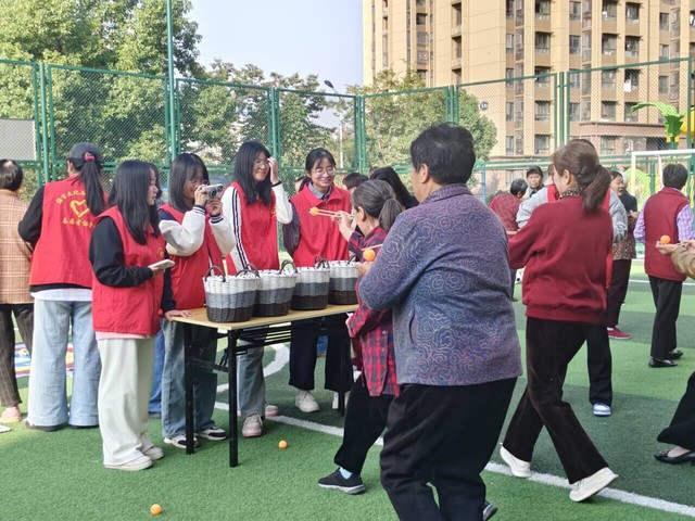志愿者們于10月24日下午2:00出發,有序前往社區開展運動會,與工作人員相互配合,分工協作,組織了夾乒乓球、足球射門、丟沙包一系列運動項目。老人們在活動結束后按成績領取了不同的獎品,現場充滿了運動與歡樂的氛圍。