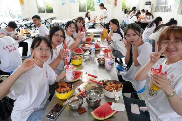中午十二點,后勤組的成員們為大家準備了十分豐盛的午飯。在為期十天的暑期“三下鄉”社會實踐活動中,不管是烈日當頭的36攝氏度高溫天氣,還是電閃雷鳴的暴雨天氣,大家都勤勤懇懇的工作,任勞任怨,按時開展工作并順利完成每項任務。這頓美食不僅是對大家辛勤工作的慰藉和嘉獎,更是對大家工作的肯定與認同,是對整個暑期“三下鄉”社會實踐活動的圓滿收尾。大家不僅吃得開心,也聊得暢意,從一開始大家彼此之間還不太熟悉,到現在能夠坐在一起談笑風生,三下鄉帶來的意義不僅是對鄉村文化的傳承與弘揚,不僅是熱心服務鄉民的志愿工作,同時還更加增強了一個團隊的凝聚力和向心力。