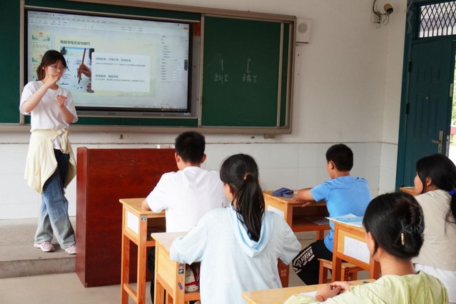 教育是社會進步的基石,是國家和民族繁榮昌盛的源泉。2024年7月6日,語言文化與傳媒學院“文脈傳承,助農興村”暑期“三下鄉”社會實踐團隊中的教學組細分了國學組、英語組和書法組,旨在激發孩子們對傳統文化的的興趣。雖然室外烈日炎炎,但教室內充滿了歡聲笑語,一場場生動有趣的教學課堂在石板沖鄉初級中學的教室里如火如荼地進行著。