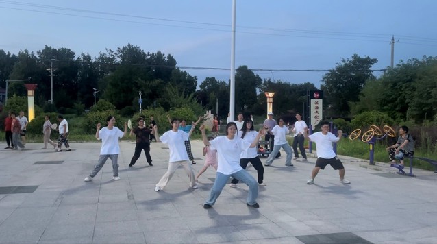 傍晚六點半,文藝組來到法治文化廣場進行節目排練,調試音響設備并進行試音準備,在一首首的歌曲中,飯后散步的鄉民們逐漸被音樂調動起的活躍氣氛所感染,加入到舞蹈之中。