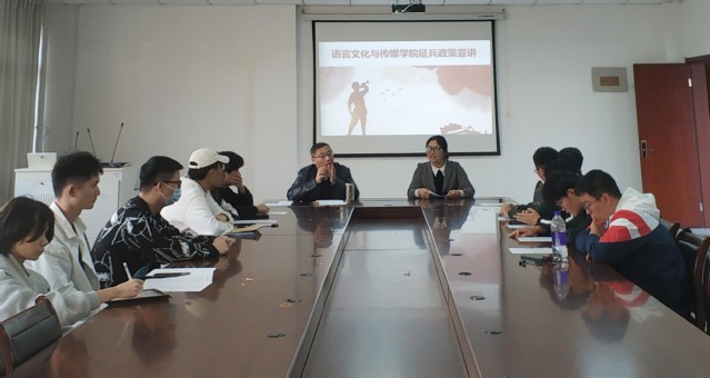 為深入貫徹習(xí)近平強(qiáng)軍思想,鼓勵(lì)應(yīng)屆畢業(yè)生積極應(yīng)征入伍,推進(jìn)國(guó)防和軍隊(duì)現(xiàn)代化建設(shè),11月25日下午,語言文化與傳媒學(xué)院在二樓會(huì)議室召開了2023年度征兵政策宣講會(huì)。學(xué)院黨委書記儲(chǔ)昭輝,黨委副書記張愛萍,就業(yè)聯(lián)絡(luò)員柳守志及2023屆畢業(yè)生代表參會(huì)。