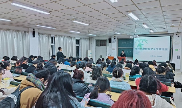 為切實提高學生安全意識,強化學生宿室安全建設,1129日晚630語言文化與傳媒學院學工辦主任顧盼盼為我院學生作宿室安全專題講座,130名學生代表參加了本次會議