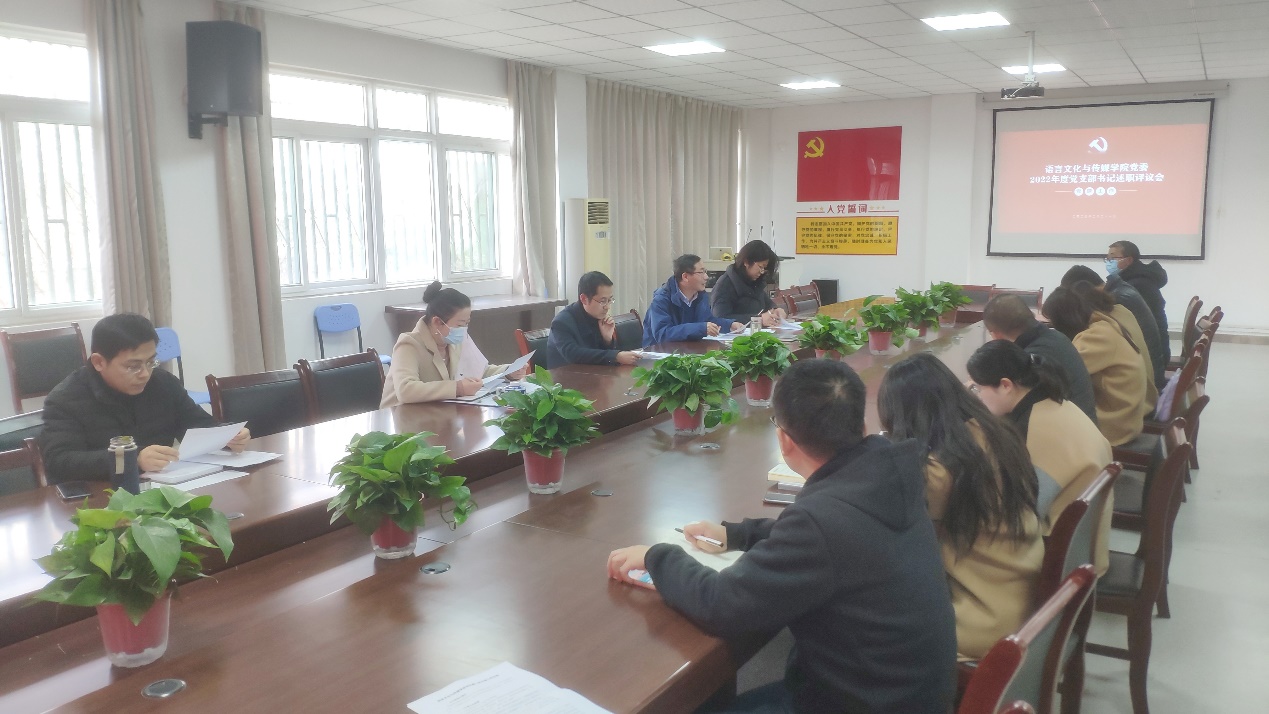 2月21日,語言文化與傳媒學院黨委在二樓會議室召開2022年度黨支部書記抓黨建工作述職評議會。學院黨政領(lǐng)導、黨委委員、科級干部和各黨支部書記參加會議。會議由學院黨委書記儲昭輝主持。
