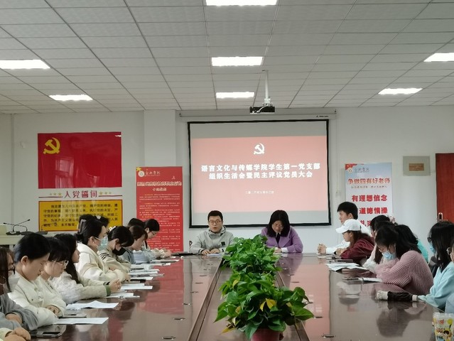 2023年3月14日星期二下午四點,語言文化與傳媒學院學生第一黨支部在五棟二樓大會議室召開組織生活會暨民主評議會。會議由學生第一黨支部書記劉政主持召開,學院黨委副書記張愛萍列席點評。