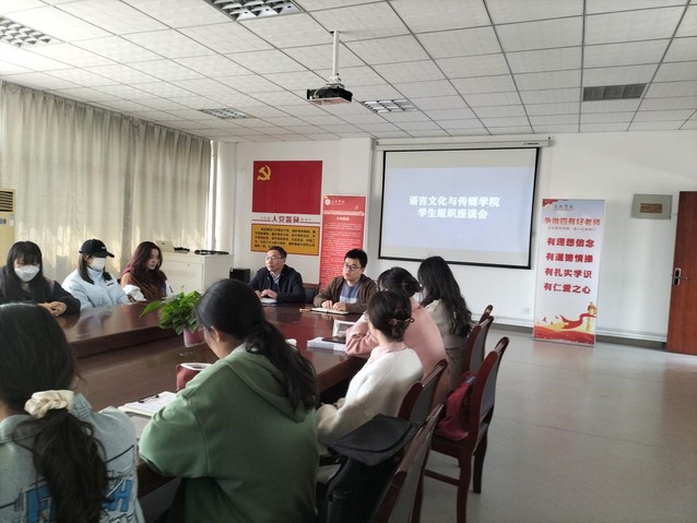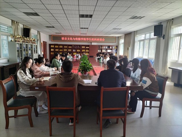 為了更好地開展學生組織工作,推動學生會等組織的高質量發展。3月28日中午十二點十分,語言文化與傳媒學院在一區善思樓C座二樓會議室召開了語言文化與傳媒學院學生組織座談會。此次會議由語言文化與傳媒學院團委負責人劉政主持,黨委書記儲昭輝出席,學生會、新媒體中心、志愿者協會以及藝術團等組織的學生骨干參加。