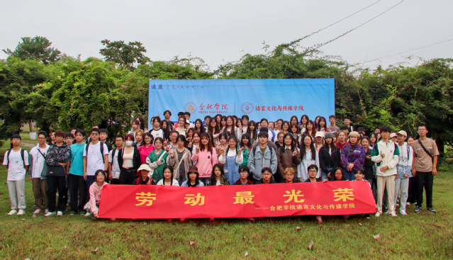 雙方代表簽署了《合肥學(xué)院語言文化與傳媒學(xué)院勞動實踐教育基地合作協(xié)議》,殷明明和孫陽陽共同為基地揭牌。