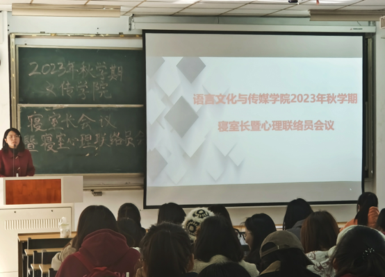 為充分發揮寢室長、心理聯絡員在學院心理健康教育中的重要作用,進一步加強學生安全管理,11月17日,語言文化與傳媒學院在5號樓101教室召開了2023年秋學期寢室長暨心理聯絡員會議,學工辦主任顧盼盼和各年級寢室長、心理聯絡員參加了本次會議。