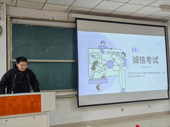 首先,誠信考試是大學(xué)生教育中至關(guān)重要的環(huán)節(jié)。在考試中,一些學(xué)生可能會采取作弊等不正當(dāng)手段來獲取高分,這種行為不僅違反了考試紀(jì)律,也違背了誠信原則。對此主持人邢嘉怡根據(jù)《合肥學(xué)院學(xué)生手冊》進(jìn)行了有關(guān)考試規(guī)則及違規(guī)處理辦法的講解。周少華、程冉同學(xué)分享了相關(guān)見解,讓同學(xué)們更理解了誠信的重要性以及作弊的危害性。
