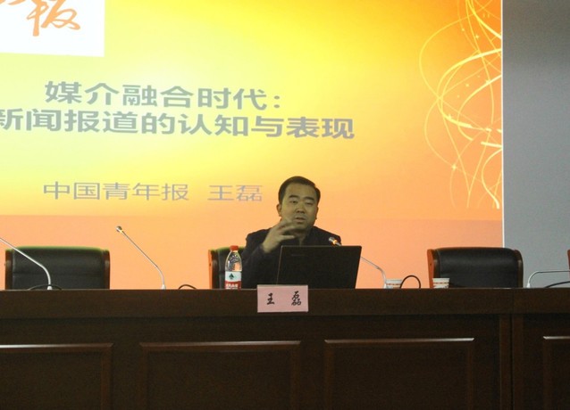 11月30日下午兩點半,語言文化與傳媒學院順利舉辦“善思講壇”中青年學術講座,邀請《中國青年報》安徽記者站站長王磊開展題為“媒介融合語境下新聞報道的認知與表現”的主題講座。語言文化與傳媒學院院長丁增武,副院長殷明明、副院長查金萍、新聞與數字傳媒系主任張冰清、實驗實訓中心主任唐元等以及文傳學院在校本、碩學生一百余人參加了此次講座。