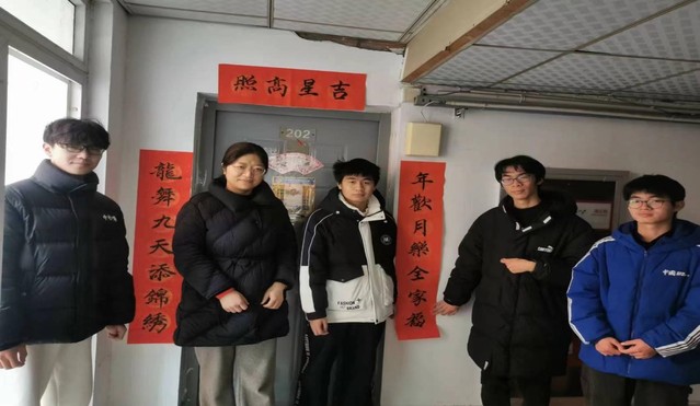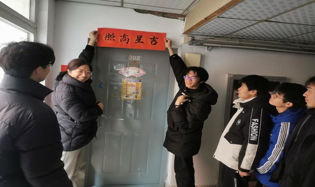 本次寢室迎新年文化活動中,書法古樸典雅、紙張顏色鮮艷的一副副對聯對聯為校園寢室增添了幾抹獨特亮色。23級漢語言文學一班班長魯同德為各個寢室書寫迎新對聯。對聯主題多樣,寓意吉祥。張愛萍老師與同學們一起粘貼新春對聯,為同學們送上美好誠摯的新春祝福。