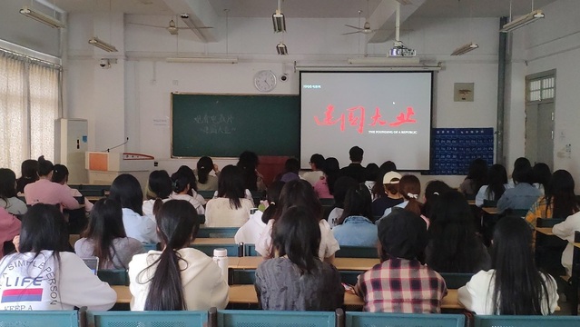 4月22日中午,語言文化與傳媒學院入黨積極分子培訓班在善思樓C座309教室開展電教片學習活動,共同觀看電影《建國大業》。