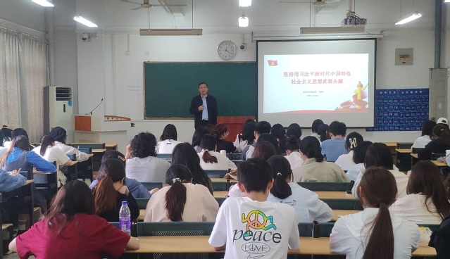 5月7日中午,語(yǔ)言文化與傳媒學(xué)院在5棟309教室舉行入黨積極分子培訓(xùn)班第三次授課,此次授課由學(xué)院黨委書(shū)記儲(chǔ)昭輝進(jìn)行,題目為堅(jiān)持用習(xí)近平新時(shí)代中國(guó)特色社會(huì)主義思想武裝頭腦,培訓(xùn)班全體學(xué)員參加。