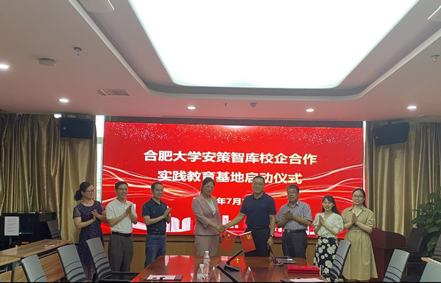 啟動儀式后,丁增武院長還與陳丹董事長簽署了校外實習基地協議,并共同為“合肥大學大學生校外實習基地”揭牌。